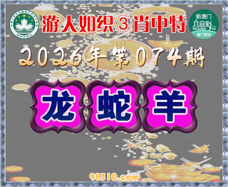 074期:《游人如织》 ③肖中特【龙.蛇.羊】开:鸡10错
