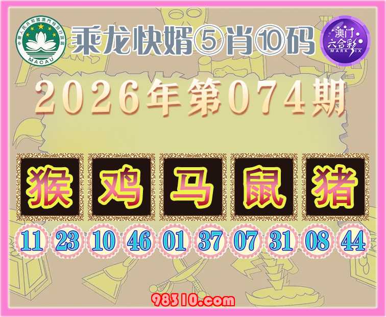 074期:〖乘龙快婿〗 ⑤肖⑩码【猴鸡马鼠猪】开:鸡10准验证上榜