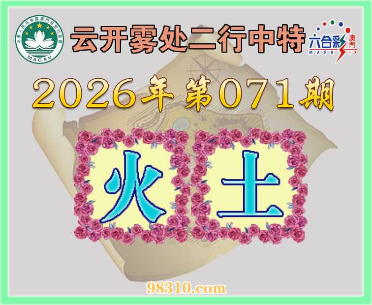 071期:『云开雾处』 二行中特【火.土】开:火48准
