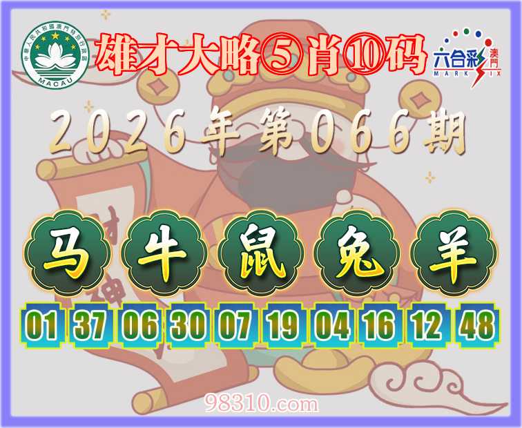 066期:『雄才大略』 ⑤肖⑩码【马牛鼠兔羊】开:马37准