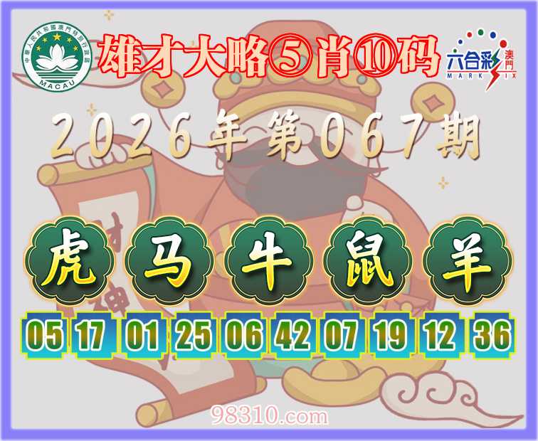 067期:『雄才大略』 ⑤肖⑩码【虎马牛鼠羊】开:虎05准