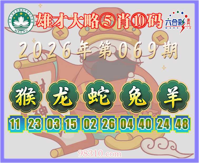 069期:『雄才大略』 ⑤肖⑩码【猴龙蛇兔羊】开:羊24准