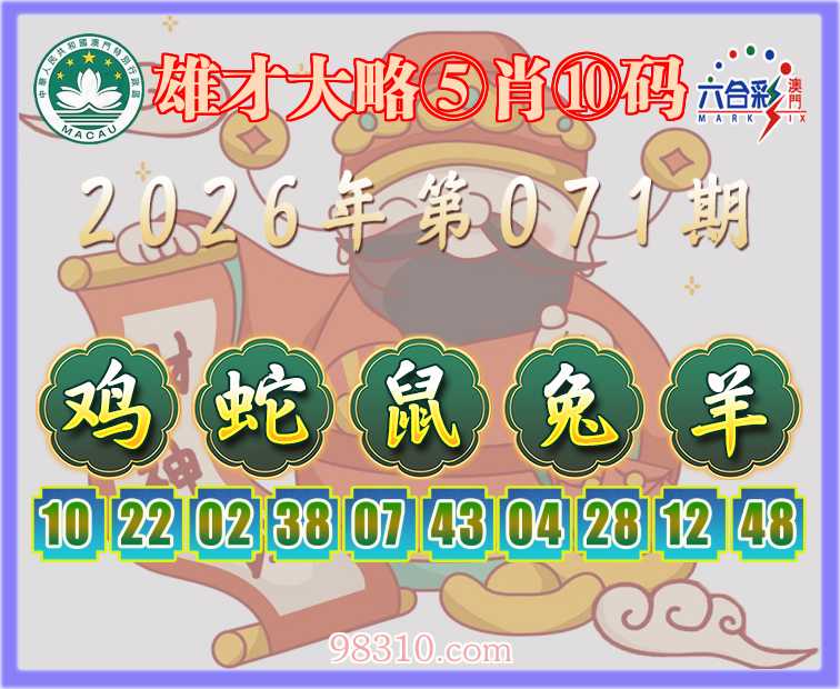 071期:『雄才大略』 ⑤肖⑩码【鸡蛇鼠兔羊】开:羊48准