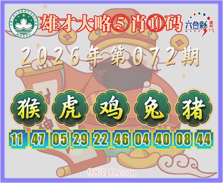 072期:『雄才大略』 ⑤肖⑩码【猴虎鸡兔猪】开:鸡46准