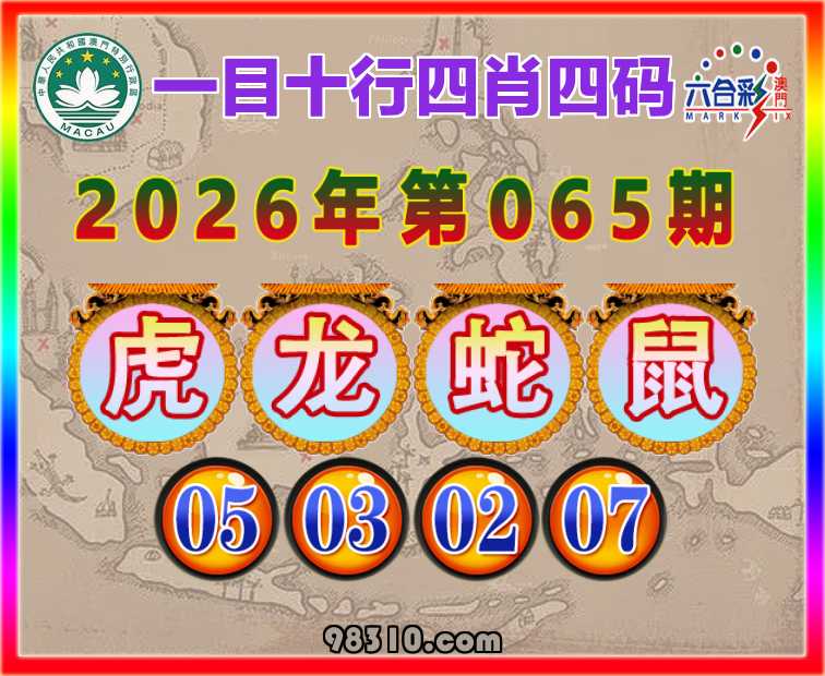 065期:〖一目十行〗 四肖四码【虎龙蛇鼠】【05.03.02.07】开:虎05准
